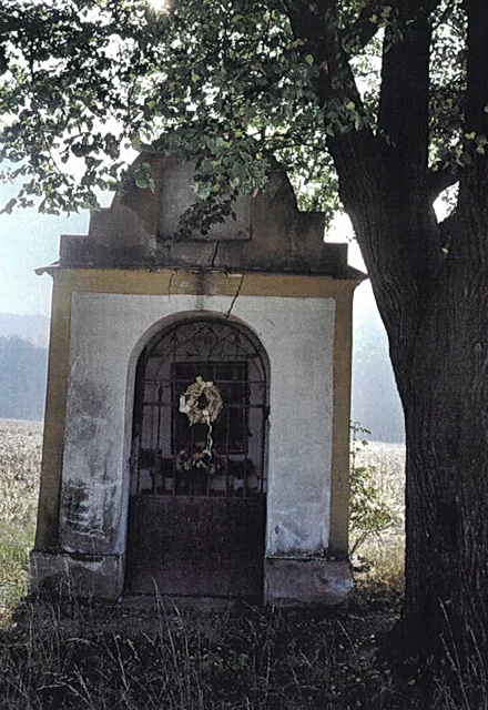 Ca. 30 m südlich der sogenannten Kirschallee, in einem großen Feld steht zwischen zwei alten Linden eine alte, baufällige Kapelle, Baufläche ca. 2,5 mal 2,5 m. Auf der Dachspitze ist ein eisernes Kreuz mit zwei Querbalken angebracht, das auf eine Erbauung anfangs des 18. Jh. hinweist. Im Innern sind ein Christusbild und zwei Marienbilder vorhanden. Die alte Kapelle ist dringend reparaturbedürftig und wird allem Anschein nach nicht gepflegt. Aufschriften etc. sind nicht zu sehen.