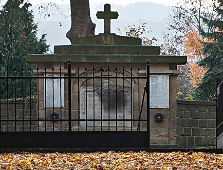Neben der Kirche stand seit 1879 eine Gruftkapelle (Mausoleum) für Ferdinand von Wydenbruck. Er war österreichischer Gesandter in Amerika, als Kaiser Maximilian in Mexiko 1867 erschossen wurde. Seinen Ruhestand verlebte er im Grafenhaus in Maria Anzbach. Diese Kapelle im Stil eines griechischen Tempels wurde vor dem 1. Weltkrieg abgetragen. An dieser Stelle wurde 1921 das derzeitige Kriegerdenkmal errichtet und erinnert uns an die Gefallenen des I. und II. Weltkrieges. Eine Skizze dieses Mausoleums ist im ersten Heimatbuch – 1983 – Seite 60, enthalten.