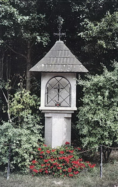 Die alte „Grießkapelle“ wurde anfangs des 19. Jahrhunderts am Wegrand einer durch das Aufeld führenden Straße errichtet. Sie bezeichnete die Stelle, wo mehrere französische Soldaten 1816 begraben worden waren. Anläßlich der Sportplatzerweiterung 1965 wurde die baufällige Kapelle abgetragen und 1977 neben der Sportplatzbrücke auf dem Grundstück der Familie Walderdorff ein archetypischer Bildstock (Marterl) errichtet. Die zwei aus der alten Kapelle stammenden Kupfertafeln wurden im neuen Bildstock innen angebracht. |