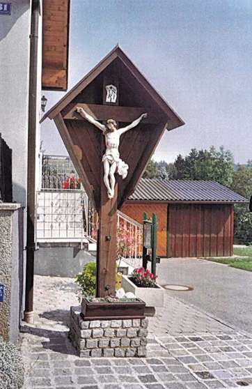 Das Wegkreuz, im Volksmund „Schürzkreuz" genannt, wurde 1965 sehr massiv und fachgerecht vom Herrn Rudolf Schwab erneuert, da das alte Holzkreuz, vermutlich aus der Franzosenzeit stammend, vermodert und umgefallen war.