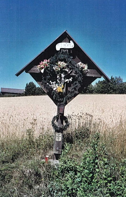 Das Wegkreuz, im Volksmund „Teichkreuz" genannt, wurde vor ca. 30 Jahren von der Familie Kieberger aus Götzwiesen, erneuert. Dieses sogenannte „Franzosenkreuz" dürfte auch, so wie eine Reihe anderer Wegkreuze, nach den Franzosenkriegen anfangs des 19. Jh. als Dank für gut überstandene Kriegsgefahren errichtet worden sein.